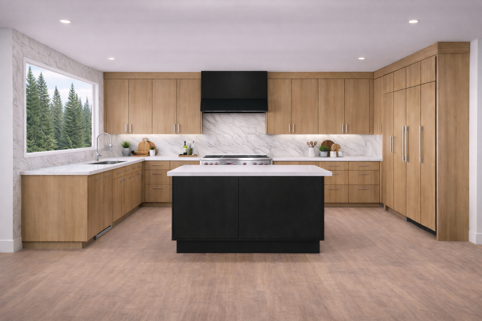 - Material choices — white oak floors, custom wood detailing, premium surfaces — prioritize durability and long-term aesthetic stability.