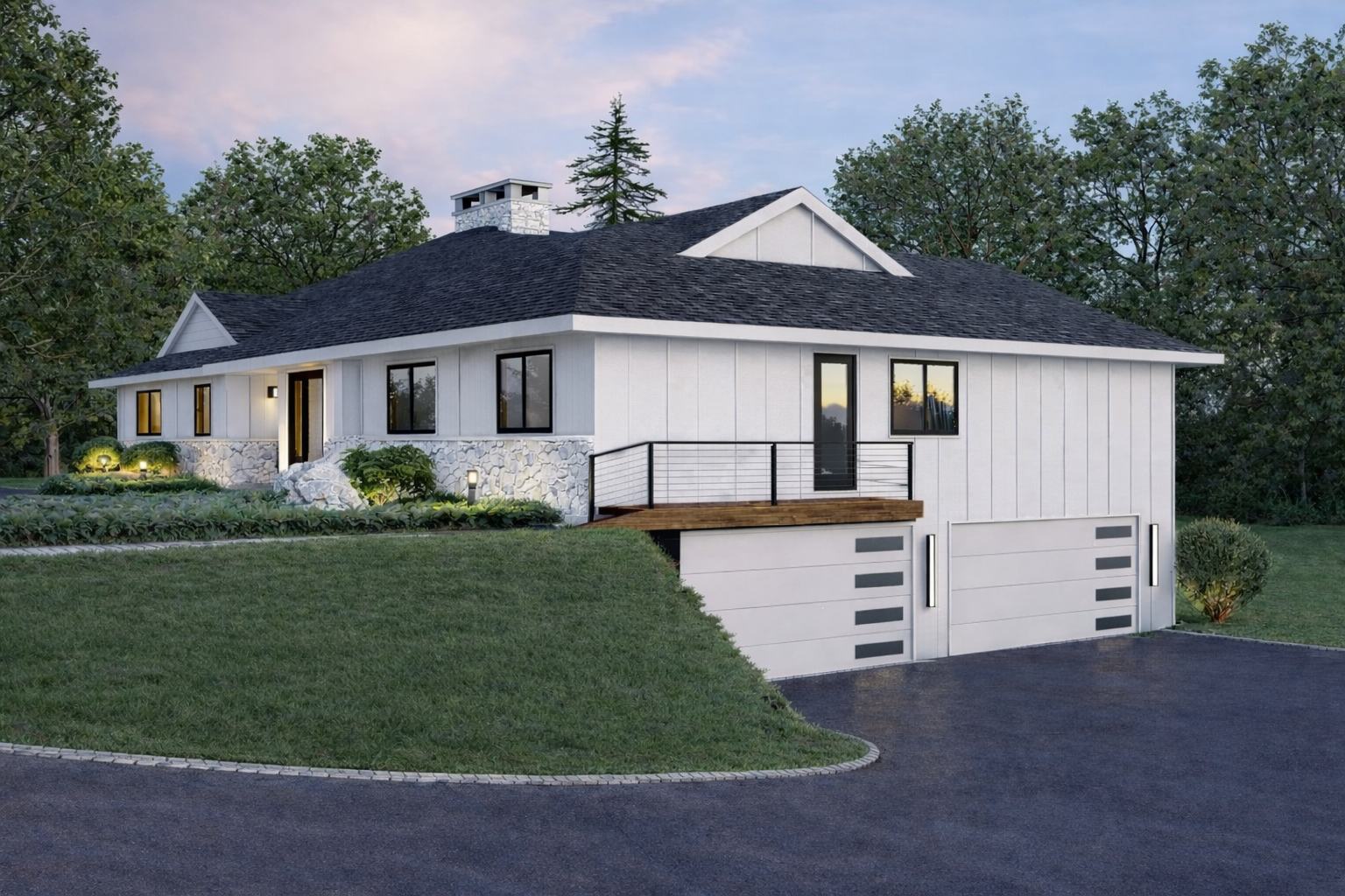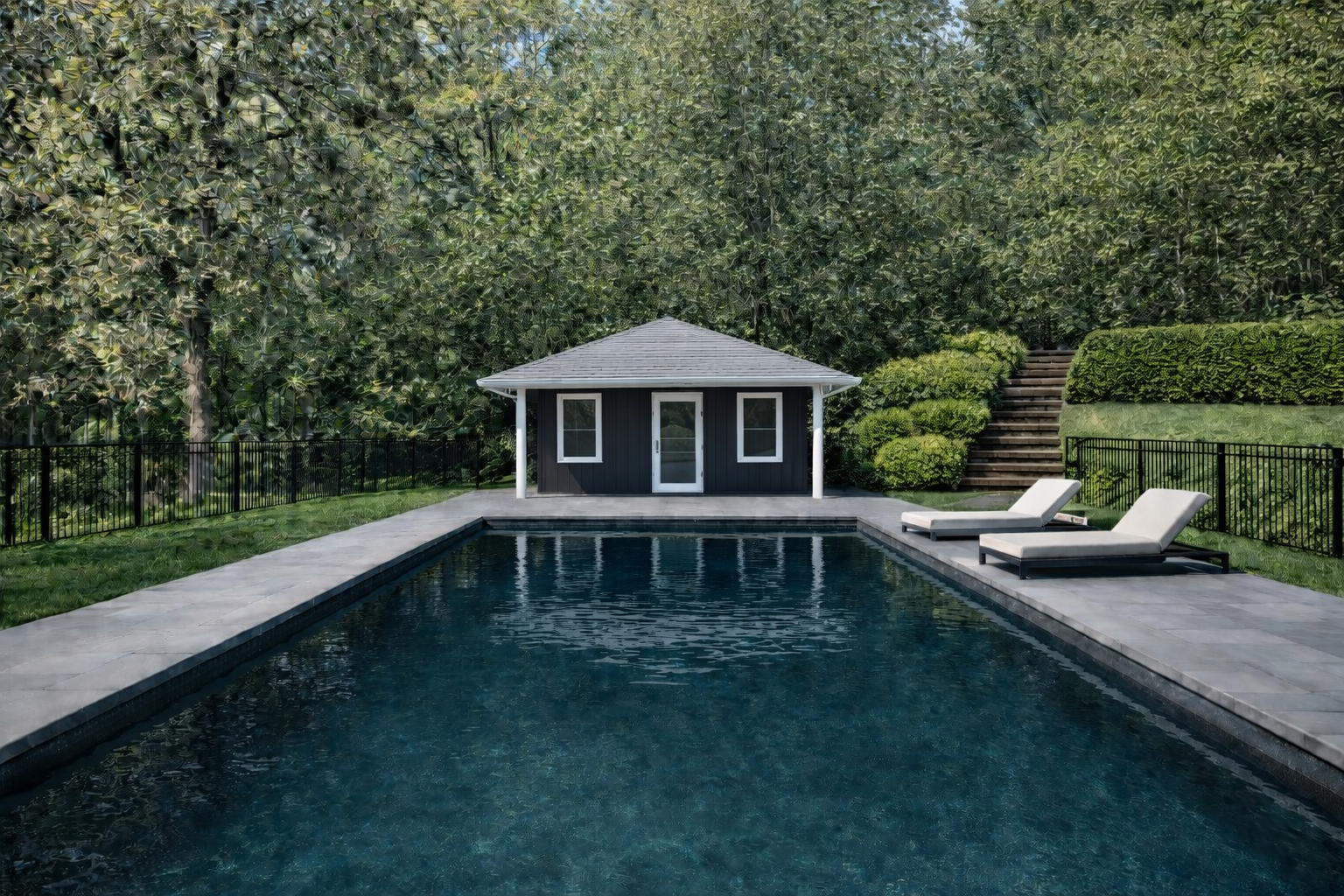 Selections were made to balance refined aesthetics with long lifecycle performance — ensuring surfaces and components age gracefully without frequent replacement. Key features are Hardie Siding, Azek Trim, and View Link Railings.