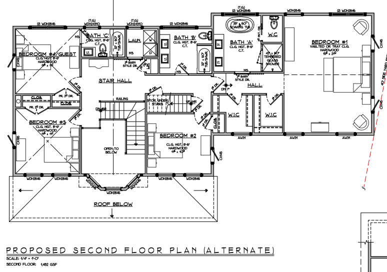 After reviewing it with our team, we realized the primary bedroom where it is on the left, is not ideal for the orientation of the property (you'd basically be looking into your neighbors yard). Additionally, we didn't like the idea of a dressing area (and wanted to use more space for the walk in closet) - especially in between the primary and the bathroom.
