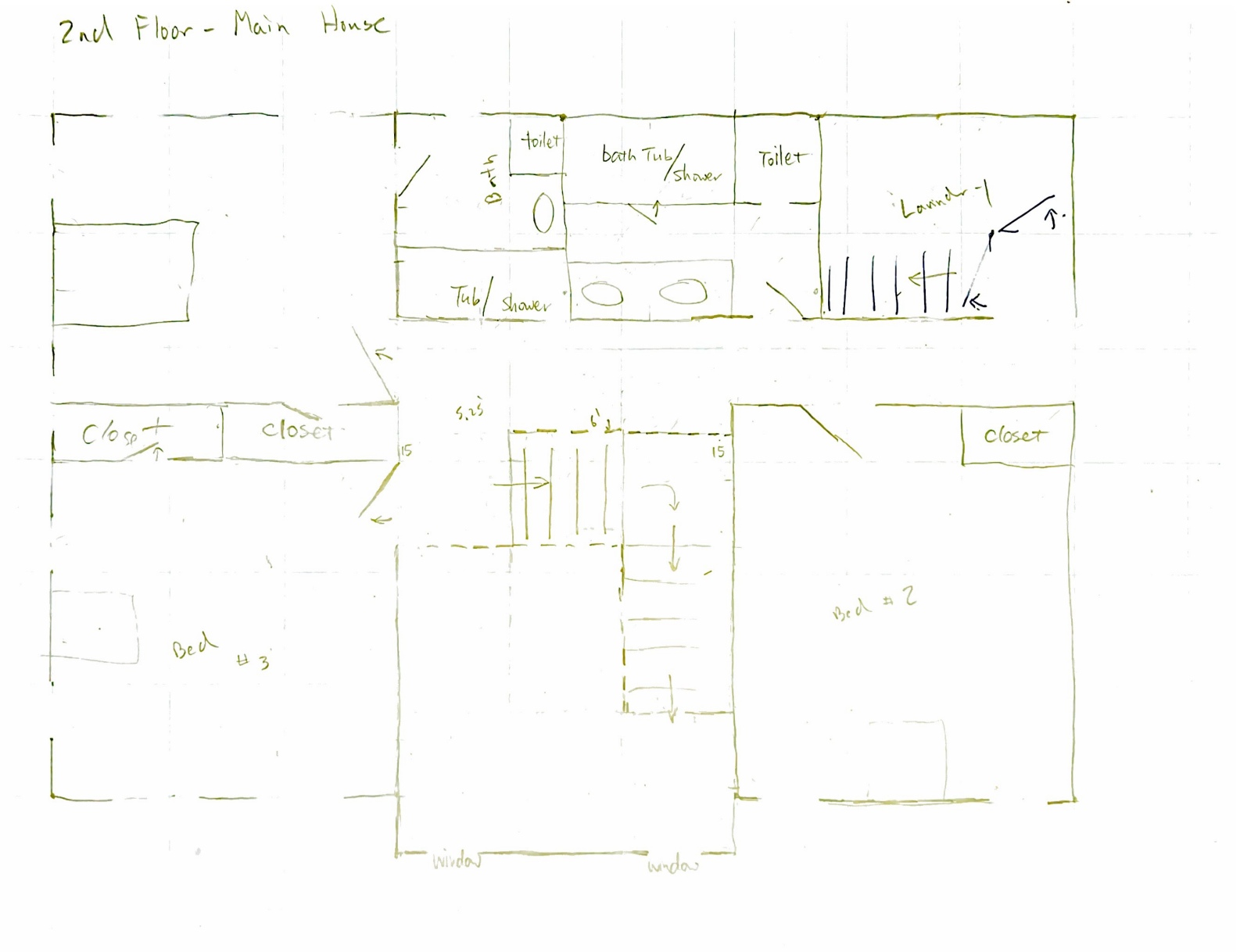 Hello graph paper drawings! In just a little bit of time we were able to sketch out some ideas for rearranging the layout on the left side of the house. Since the house is small, we kept dimensions to 1 box = 1 sq ft for ease. This made it super easy to come back to our architect with a quick edit. He was even able propose two ways for the attic stairs.