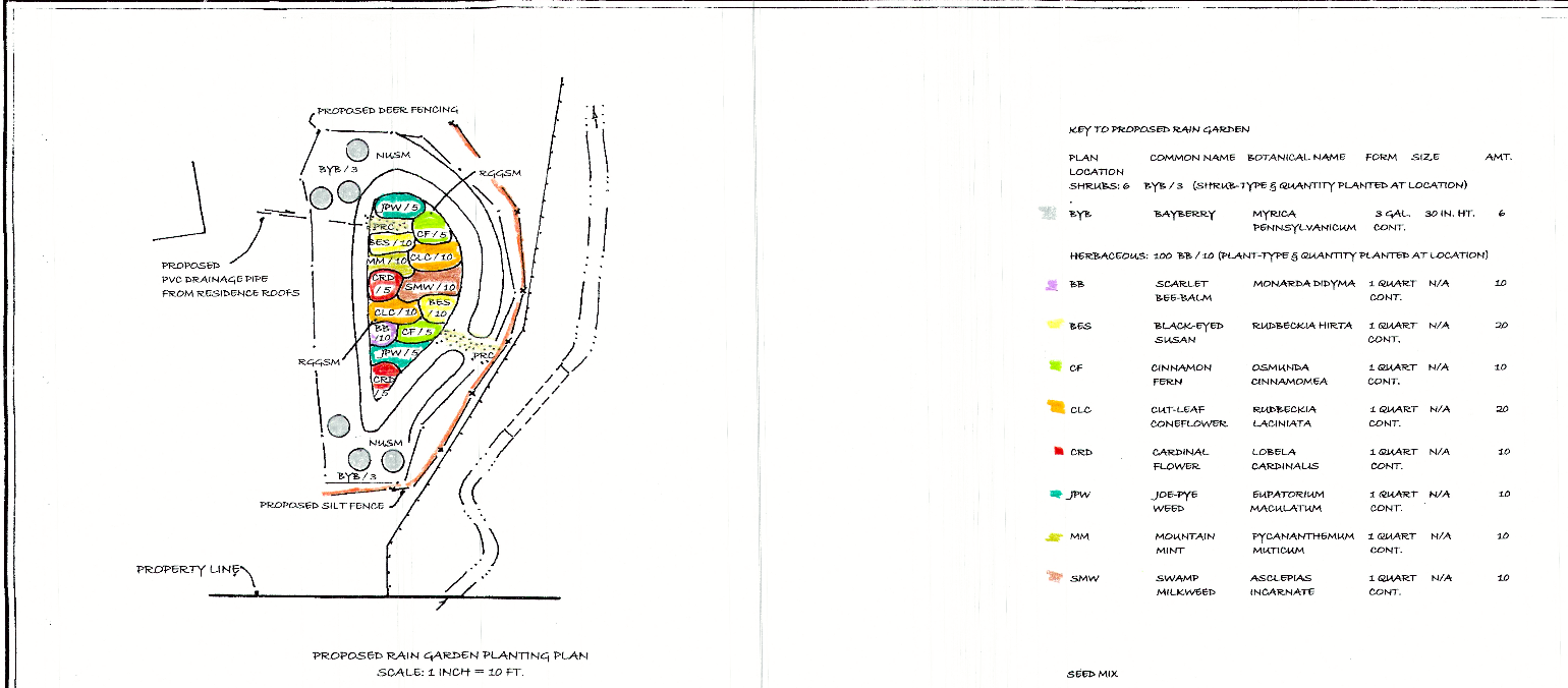 To offset the new square footage, we have to now add two areas of mitigation. The first, at the top of the picture below, are natural plantings on the border of the wetlands. Second, we've been asked to add a rain garden on the other side of the house as well.